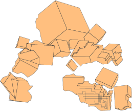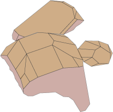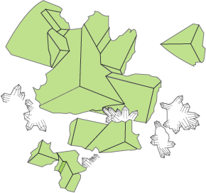| 現在の所、サンプル的に作成してみたが、極力忠実に出来るだけ詳細に変化点をとらえる様努力した。 作図方法はAdobe Illustrator 9.0Jを使用し各結晶面ごとアンカーポイントツールを使用して作図し全面を統合させた後、目立った条線 がある場合は書き込み、GIF画像へ変換した。 職業柄(印刷版下作成)デザインを手掛けて来たが、今回の様な試みは初めてで有る為、今一納得のいくものでは有りません。 今後の課題に致したいと思いますので、皆さんのご意見も宜しくお願い致します。 |
