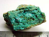 海岸の銅鉱床酸化帯から一般に皮膜状で産出、外観は孔雀石によく似る。