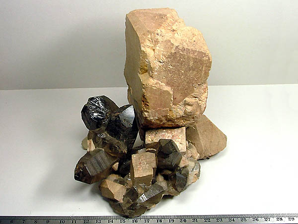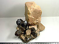 一番大きな結晶はバベノ式双晶で高さ20cm以上も有る大きな標本、ダム工事現場の露岩掘削中産出。