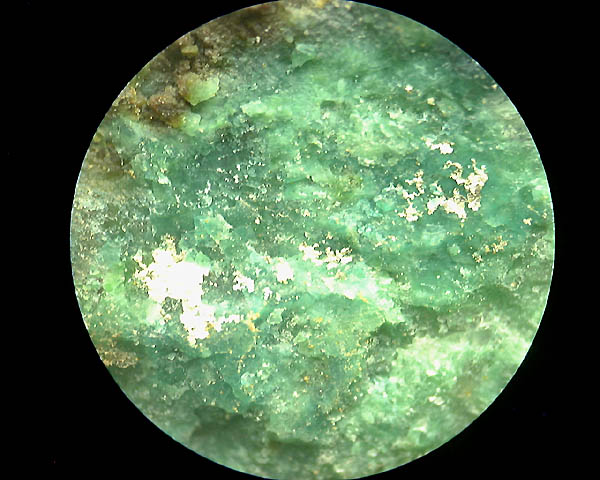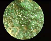 毒々しい濃い緑色をなし、短波の紫外線で青白色の強い蛍光を発する。