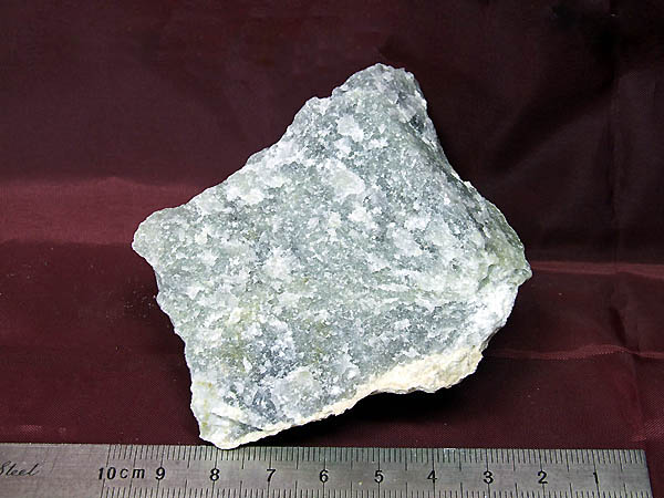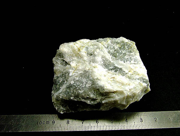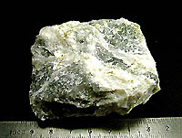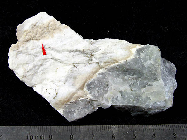 スパー石を貫く白色の脈として産出。 本鉱の国内原産地。