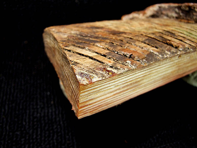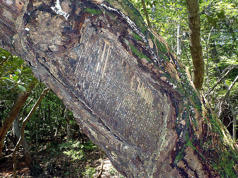 | ブッシュクラフト ティンダーウッド 松根(精)油採取痕 岡山県産 赤松 樹齢200年以上、根元の直径1m前後の戦時中は航空ガソリンの原料として幹の樹皮を剥ぎ、木部にV字型の切れ込みを入れ 松根(精)油(テレビン油)を採取されていた赤松で、傷口を治す作用から油脂(ヤニ)が集まり、最高品質の柾目の通った肥松と成り 箸材などの高級木工材として珍重される部位です。 |