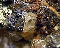 結晶は見られないが、透明感を成す茶色の塊状で産出。鼈甲飴の様な質感でスコート石や布賀石などの白色系の母岩に伴う為、見付け易く採集は容易。
