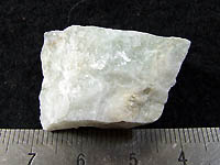 三原産の本鉱は、スコート石、ゲーレン石と伴い透明感の無い白色の塊状として産出。原産地の布賀と違い、比較的容易に採集する事が出来る。